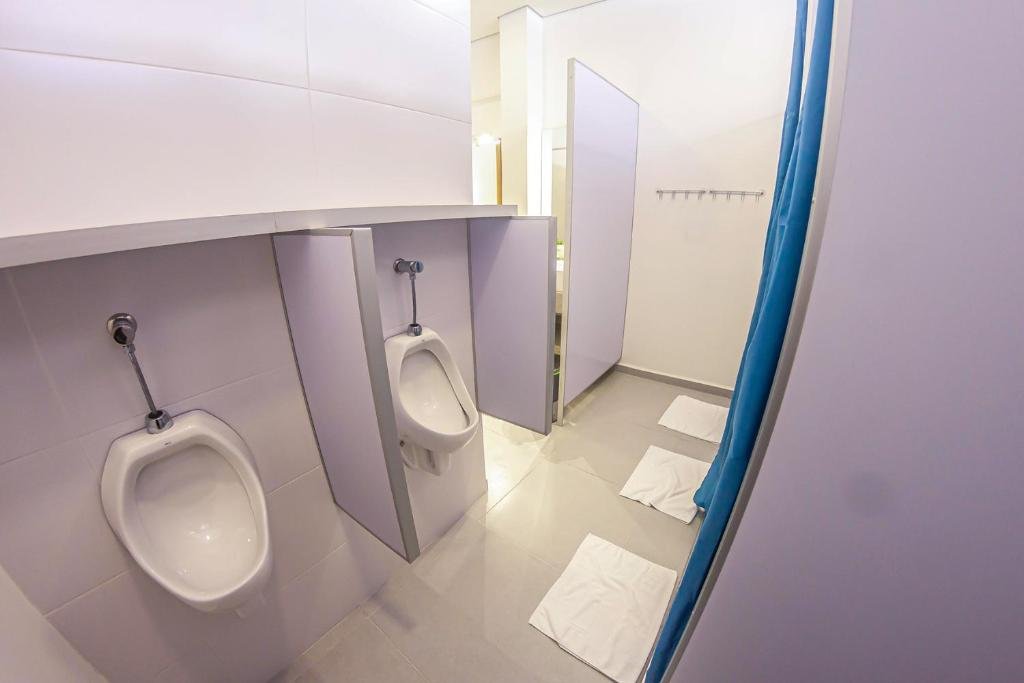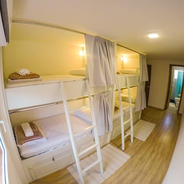 Os dormitórios simples mistos e femininos têm armários, ar-condicionado e beliches com cortinas de privacidade. Há também uma sala privativa. Banheiros compartilhados ou integrados.
